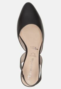 Je kunt ook nog een open schoentje aan de voorkant of zijkant kiezen. Denk bijvoorbeeld aan de slingback. Hierdoor lijken je benen ook langer.